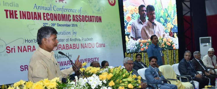 Andhra Pradesh Chief Minister N. Chandrababu Naidu inaugurating Annual Conference of The Indian Economic Association hosted by Sri Venkateswara University on 27th December 2016.