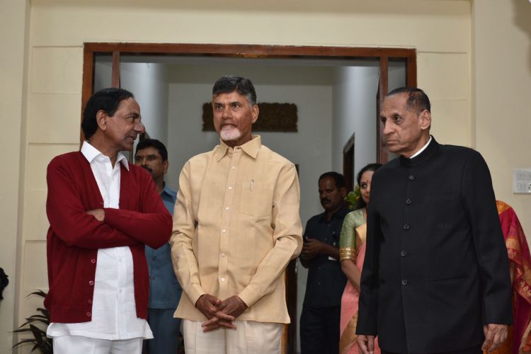 Andhra Pradesh CM N. Chandrababu Naidu, Telangana CM K. Chandrasekhar Rao participated in State Banquet - Dinner in honour of the President of India Pranab Mukharjee hosted by Governor ESL Narasimhan in the lawns of Rajbhavan in Hyderabad on 27th December 2016.