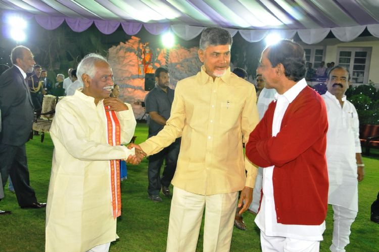 Andhra Pradesh CM N. Chandrababu Naidu, Telangana CM K. Chandrasekhar Rao participated in State Banquet - Dinner in honour of the President of India Pranab Mukharjee hosted by Governor ESL Narasimhan in the lawns of Rajbhavan in Hyderabad on 27th December 2016.