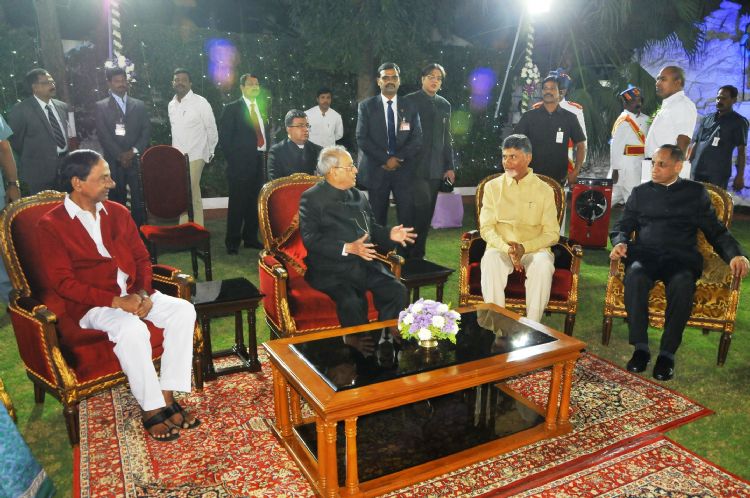 Andhra Pradesh CM N. Chandrababu Naidu, Telangana CM K. Chandrasekhar Rao participated in State Banquet - Dinner in honour of the President of India Pranab Mukharjee hosted by Governor ESL Narasimhan in the lawns of Rajbhavan in Hyderabad on 27th December 2016.