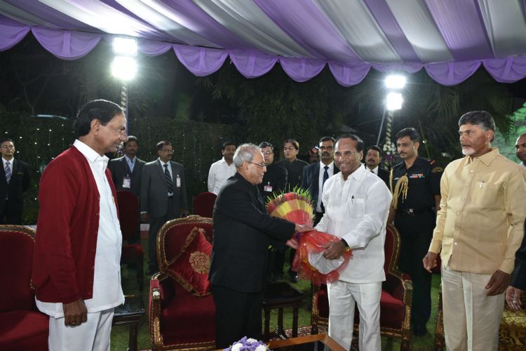 Andhra Pradesh CM N. Chandrababu Naidu, Telangana CM K. Chandrasekhar Rao participated in State Banquet - Dinner in honour of the President of India Pranab Mukharjee hosted by Governor ESL Narasimhan in the lawns of Rajbhavan in Hyderabad on 27th December 2016.
