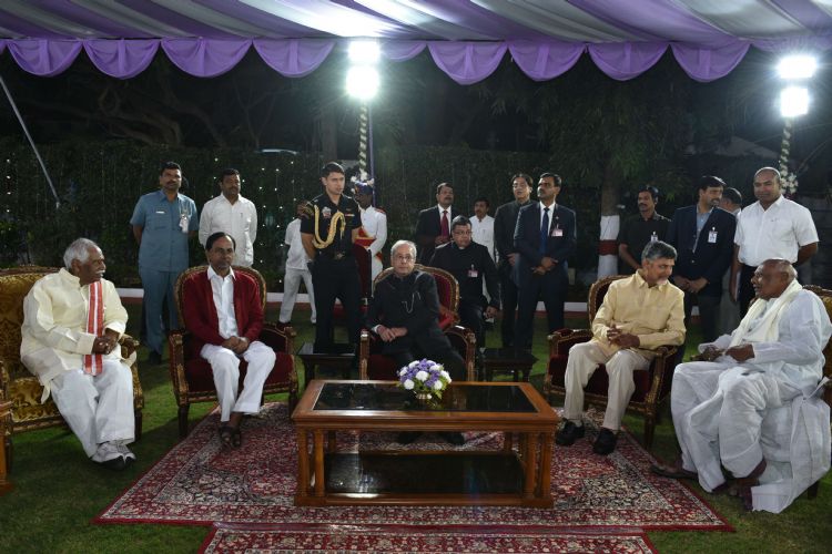 Andhra Pradesh CM N. Chandrababu Naidu, Telangana CM K. Chandrasekhar Rao participated in State Banquet - Dinner in honour of the President of India Pranab Mukharjee hosted by Governor ESL Narasimhan in the lawns of Rajbhavan in Hyderabad on 27th December 2016.