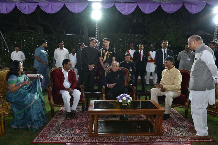 Andhra Pradesh CM N. Chandrababu Naidu, Telangana CM K. Chandrasekhar Rao participated in State Banquet - Dinner in honour of the President of India Pranab Mukharjee hosted by Governor ESL Narasimhan in the lawns of Rajbhavan in Hyderabad on 27th December 2016.