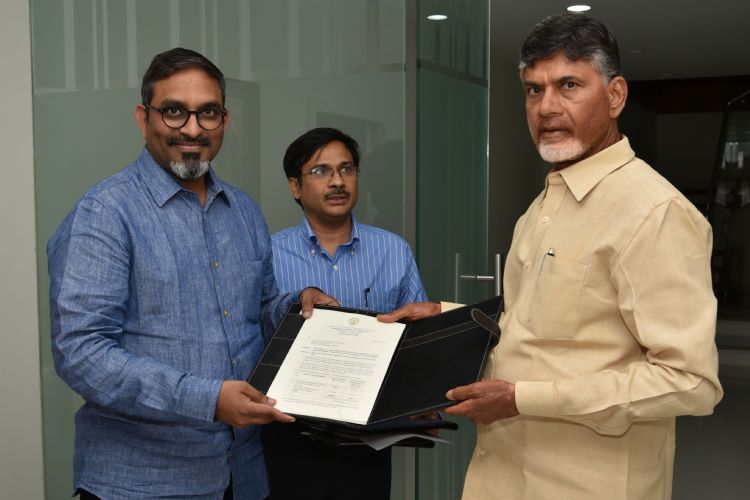 Andhra Pradesh Chief Minister N. Chandrababu Naidu handing over final sanction letters for establishing SH Food Processing Unit, Prakasham District on 29th December 2016.