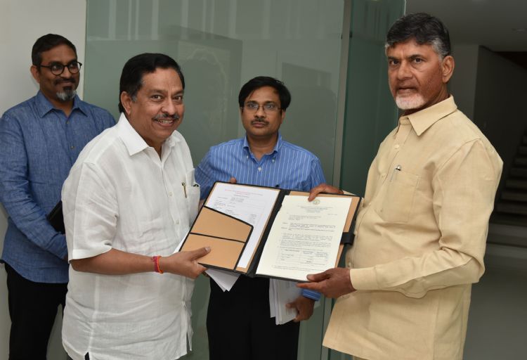Andhra Pradesh Chief Minister N. Chandrababu Naidu handing over final sanction letters for establishing North Coastal Integrated Food Park, Vijayanagaram District on 29th December 2016.