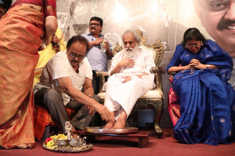 Indian Play Back Singer SP Balasubrahmanyam organised Pada Pooja to Legendary Singer Yesudas on completion of 50 years of Musical Journey in Chennai on 30th December 2016.