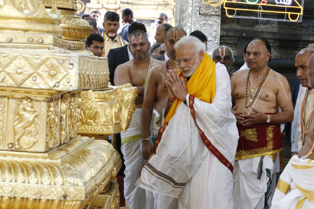 Prime Minister of India, Narendra Modi on Tuesday offered prayers at the famous hill shrine of Lord Venkateswara in Tirumala. He was accompanied by Governor E.S.L. Narasimhan, Chief Minister N. Chandrababu Naidu, Union Minister Sujana Chowdary for darshan.