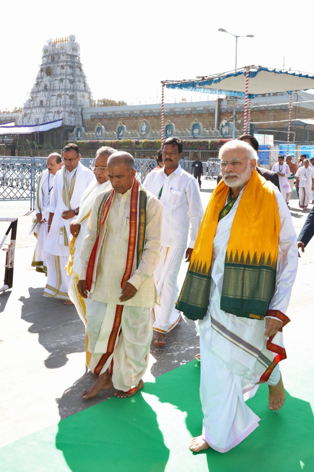 Prime Minister of India, Narendra Modi on Tuesday offered prayers at the famous hill shrine of Lord Venkateswara in Tirumala. He was accompanied by Governor E.S.L. Narasimhan, Chief Minister N. Chandrababu Naidu, Union Minister Sujana Chowdary for darshan.