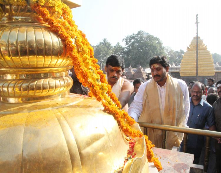 YSR Congress Party chief Y.S. Jagan Mohan Reddy peforms pooja at Sri Mallikarjuna Swamy Temple in Srisailam on Friday.