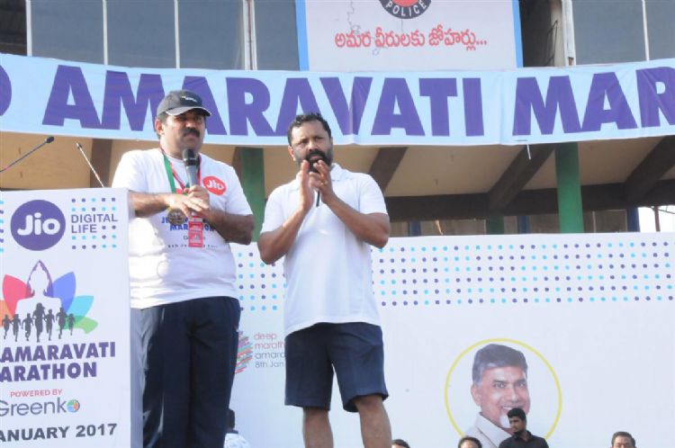 Andhra Pradesh Irrigation Minister Devineni Uma Maheswara Rao inaugurated Amaravathi JIO Marathon at Indira Gandhi Municipal Stadium in Vijayawada on 8th January 2016.