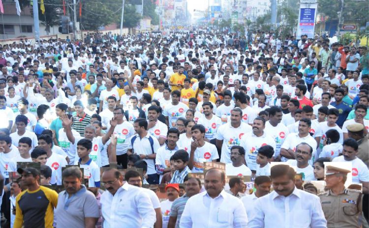 Andhra Pradesh Irrigation Minister Devineni Uma Maheswara Rao, Health Minister Kamineni Srinivas and Agriculture Minister P Pullarao participated in Amaravathi JIO Marathon at Indira Gandhi Municipal Stadium in Vijayawada on 8th January 2016.