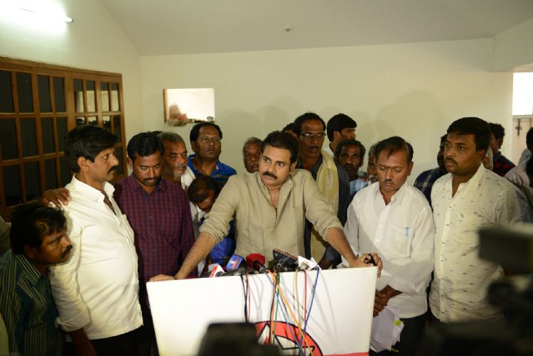 Farmers belonging to Amaravathi and Polavaram areas met Janasena Chief and Cine Actor Pawan Kalyan at Janasena Party Office in Hyderabad on Wednesday.
