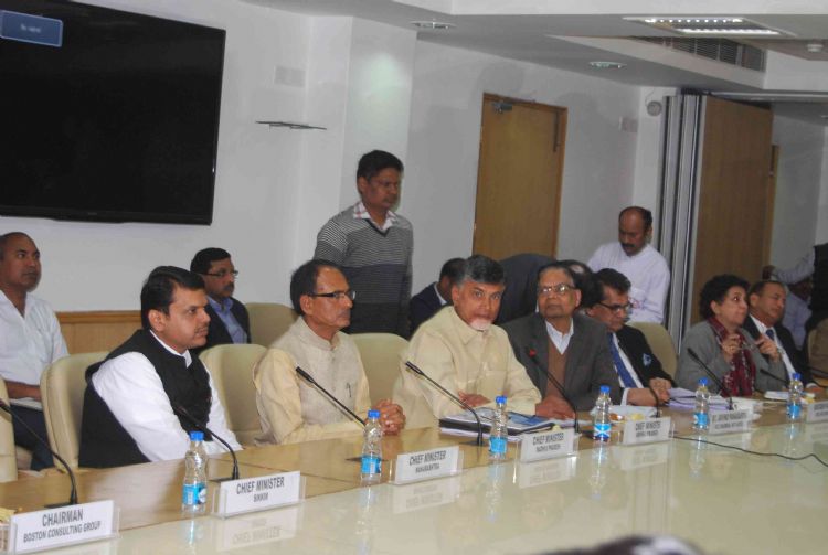 Chief Minister of Andhra Pradesh Nara Chandrababu Naidu meeting with the Members of Committee on Demonetization at NITI Aayog at New Delhi on 24th January 2017. Vice-Chairman of NITI Aayog, Dr. Arvind Panagariya, NITI Aayog CEO, Amitab Kanth, Chief Minister of Maharashtra, Devendra Fadnavis and Chief Minister of Madhyapradesh, Shivraj Singh Chouhan are also seen.