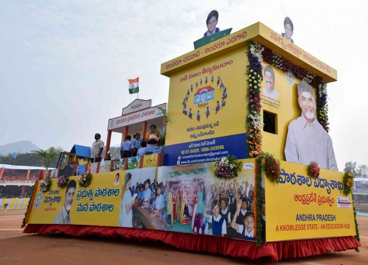 Andhra Pradesh Governor ESL Narasimhan and Chief Minister N. Chandrababu Naidu participating in 68th Republic Day Celebrations held at Indira Gandhi Municipal Stadium in Vijayawada on 26th January 2017.