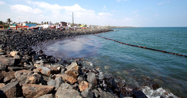 Tonnes of Crude Oil spilled into the sea when two cargo ships collided off the Ennore Port in Chennai and nearly 70 tonnes of oil sludge accumulated on the Ennore shore has been removed by the Indian Coast Guard on 2nd February 2017.