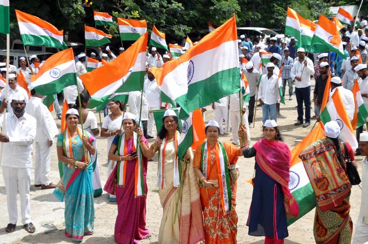 TPCC President Capt. N. Uttam Kumar Reddy hoisting party flag on the occasion of 76th anniversary of Quit India Movement at Gandhi Bhavan on Thursday. Later, Seva Dal took out Tiranga Yatra from Gandhi Bhavan to Gun Park. AICC Secretary R.C. Khuntia, LoP in Council Mohammed Ali Shabbir, Youth Congress president Anil Kumar Yadav and other leaders are also seen - INN Photos