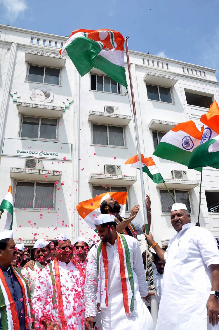 TPCC President Capt. N. Uttam Kumar Reddy hoisting party flag on the occasion of 76th anniversary of Quit India Movement at Gandhi Bhavan on Thursday. Later, Seva Dal took out Tiranga Yatra from Gandhi Bhavan to Gun Park. AICC Secretary R.C. Khuntia, LoP in Council Mohammed Ali Shabbir, Youth Congress president Anil Kumar Yadav and other leaders are also seen - INN Photos