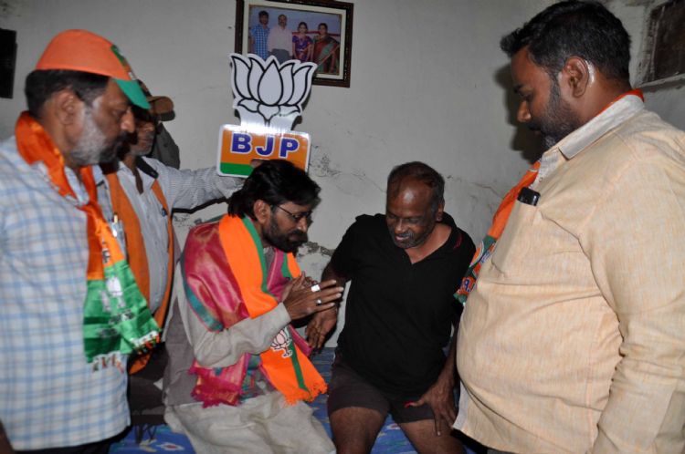 BJP Bahadurpura candidate Haneef Ali doing door to door campaign in Aliabad, Bahadurpura on Tuesday - INN Photos