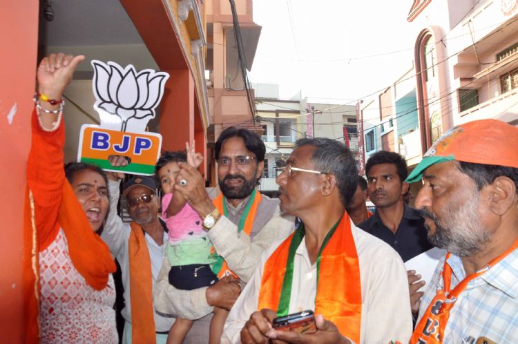 BJP Bahadurpura candidate Haneef Ali doing door to door campaign in Aliabad, Bahadurpura on Tuesday - INN Photos