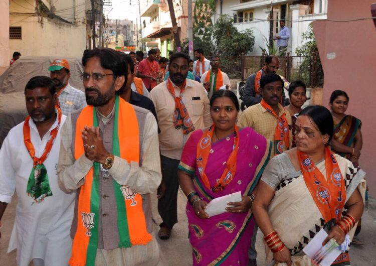 BJP Bahadurpura candidate Haneef Ali doing door to door campaign in Aliabad, Bahadurpura on Tuesday - INN Photos