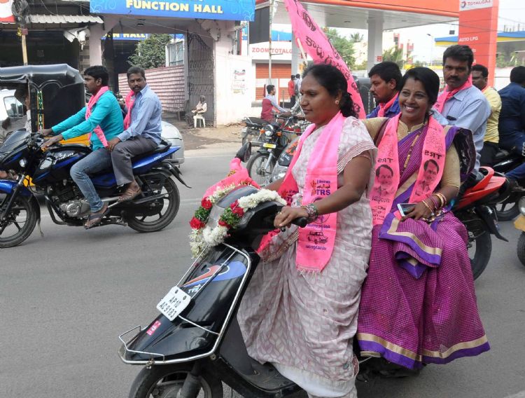 TRS Bahadurpura candidate Mir Inayath Ali Baqri takes out rally on the last day of election campaign on Wednesday - INN Photos