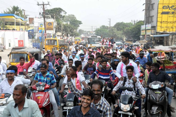 TRS Bahadurpura candidate Mir Inayath Ali Baqri takes out rally on the last day of election campaign on Wednesday - INN Photos