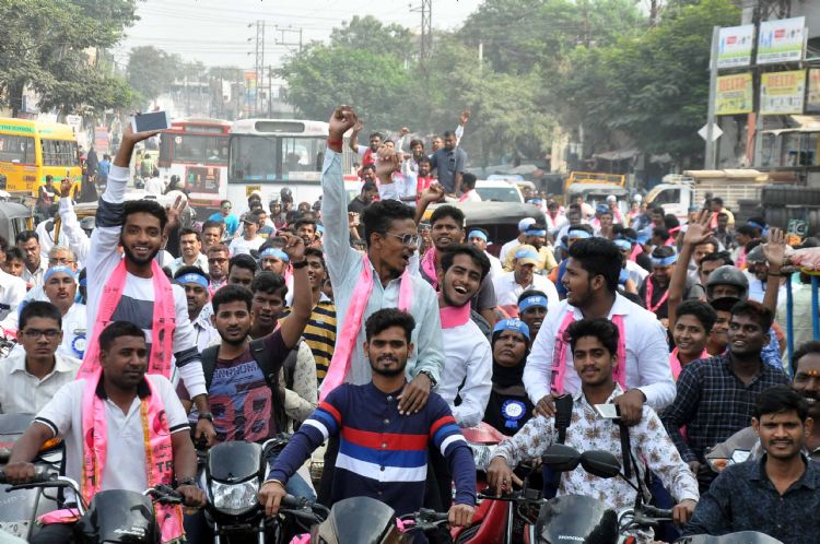 TRS Bahadurpura candidate Mir Inayath Ali Baqri takes out rally on the last day of election campaign on Wednesday - INN Photos
