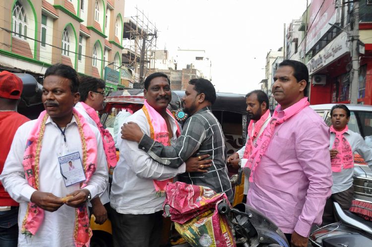 TRS activists celebrating party's victory at Charminar by distributing sweets - INN Photos