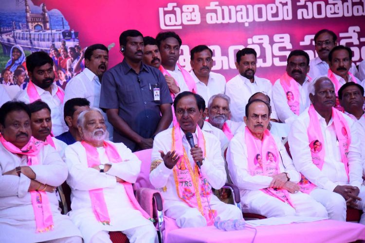 Caretaker Chief Minister and TRS President K Chandrasheker Rao at Telangana Bhavan after winning elections on Tuesday - INN Photos