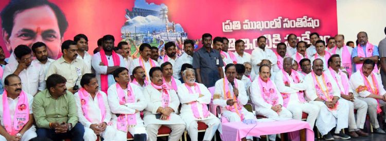 Caretaker Chief Minister and TRS President K Chandrasheker Rao at Telangana Bhavan after winning elections on Tuesday - INN Photos