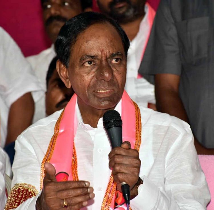 Caretaker Chief Minister and TRS President K Chandrasheker Rao at Telangana Bhavan after winning elections on Tuesday - INN Photos
