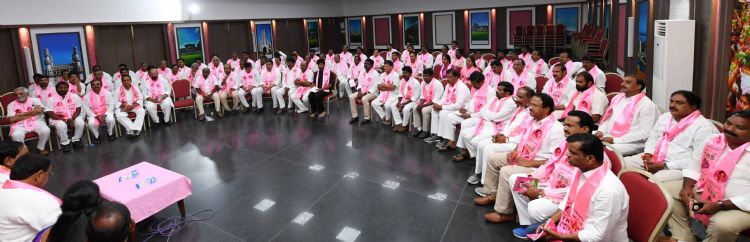 TRS President K Chandrasheker Rao addressing In TRS Legislature Party meeting at Telangana Bhavan on Wednesday - INN Photos