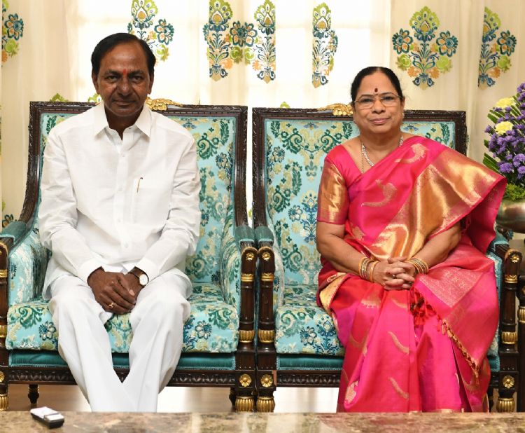 Governor E.S.L. Narasimhan administering oath of office and secrecy to Kalvakuntla Chandrasekhar Rao as the Chief Minister of Telangana State at Raj Bhavan on Thursday - INN Photos