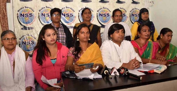 Transgender leader Chandra Mukhi and others addressing a press conference here on Wednesday - INN Photos
