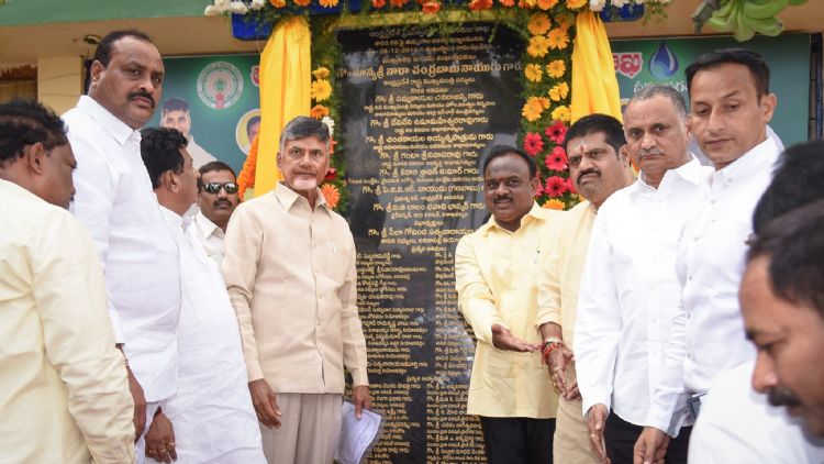 Chief Minister Chandra Babu Naidu broke the ground for construction of Tummapala barrage on Sarada River near Anakapalli.