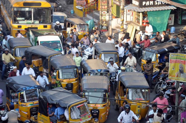 Huge traffic jam was witnessed on Darusshifa To Miralam Mandi Road with Traffic Police diverting all heavy vehicles from Chanchalguda in view of rectification works of power cables in Malakpet - INN Photos