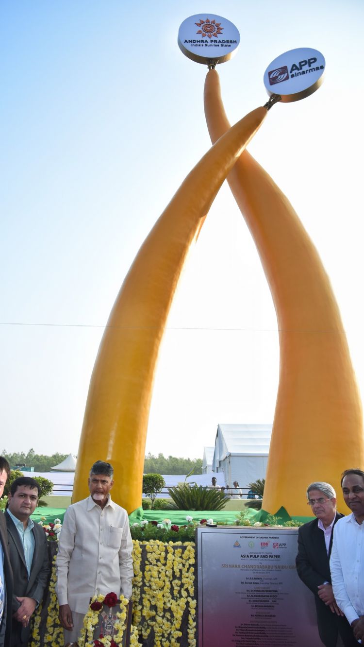 Andhra Pradesh Chief Minister Nara Chandra Babu Naidu participating in MOU signing event of Asia Pulp and Paper and Unveiling of Pylons for Asia Pulp and Paper (APP) and Ramayapatnam Port on Wednesday.
