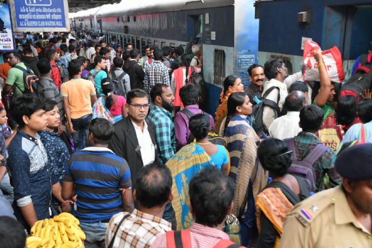 South Central Railway has scheduled 203 special trains exclusively to meet the rush of the Sankranthi festival. Despite such huge arrangements, the Trains ran heavily crowded on Saturday and Sunday.