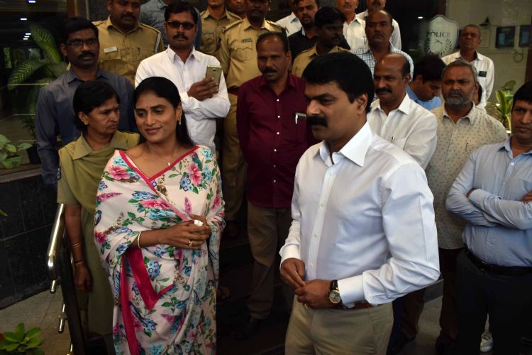 YSRCP leader YS Sharmila meets Hyderabad Police Commissioner Anjani Kumar on Monday to lodge a complaint against rumours being spread in social media against her - INN Photos