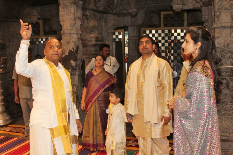Panchayat Raj and IT Minister of Andhra Pradesh Nara Lokesh along with family members offered prayers in the temple of Lord Venkateswara in Tirumala on Monday morning.