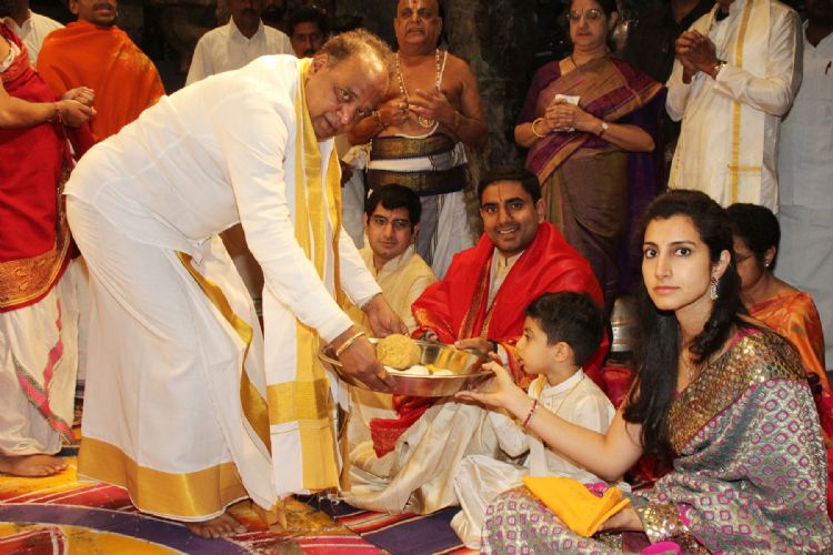 Panchayat Raj and IT Minister of Andhra Pradesh Nara Lokesh along with family members offered prayers in the temple of Lord Venkateswara in Tirumala on Monday morning.