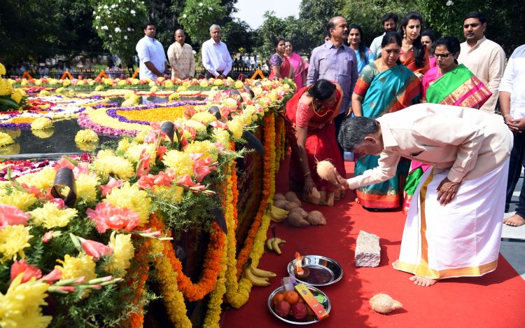 Chief Minister Nara Chandrababu Naidu celebrated Sankranthi Festival at his native place Naravaipally on Tuesday with family members.