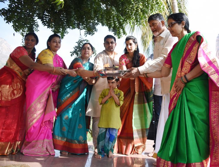Chief Minister Nara Chandrababu Naidu celebrated Sankranthi Festival at his native place Naravaipally on Tuesday with family members.