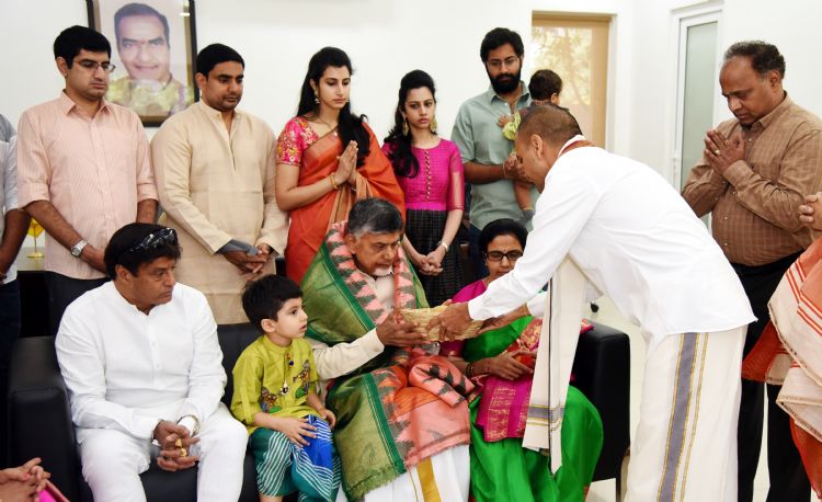 Chief Minister Nara Chandrababu Naidu celebrated Sankranthi Festival at his native place Naravaipally on Tuesday with family members.