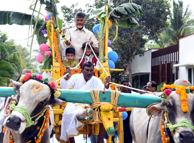 Chief Minister Nara Chandrababu Naidu celebrated Sankranthi Festival at his native place Naravaipally on Tuesday with family members.