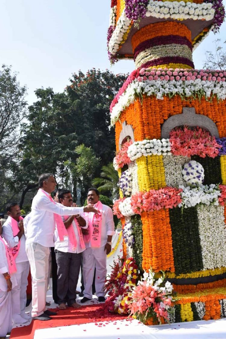 Chief Minister K Chandrasheker Rao, along with TRS MLAs, paying tributes to Telangana Martyrs at Gun Park on Thursday - INN Photos