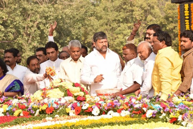 Family members and TDP leaders pay tributes to former CM late N.T. Rama Rao at his Samadhi at Necklace Road on his death anniversary on Friday - INN Photos