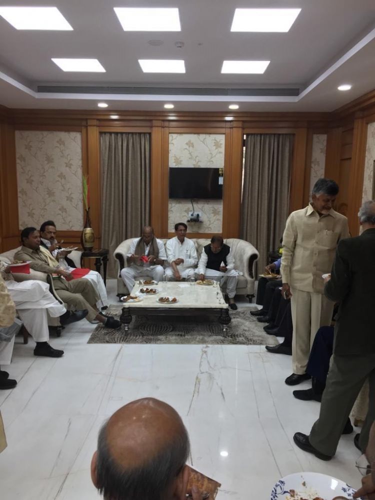 All India Trinamool Congress chairperson and Chief Minister of West Bengal Mamata Benergee gave a Tea Party after the United India Rally held at Kolkata on Saturday. AP CM Chandra Babu Naidu played a key role.