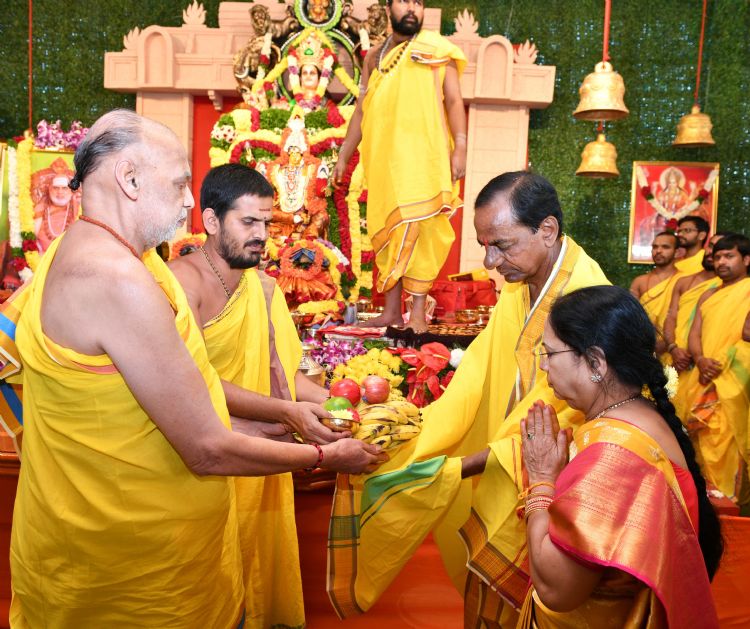 Telangana Chief Minister K Chandra Sekhar Rao performs Ayutha Chandi Yagam at Erravelli Farm House in Siddeipet District.
