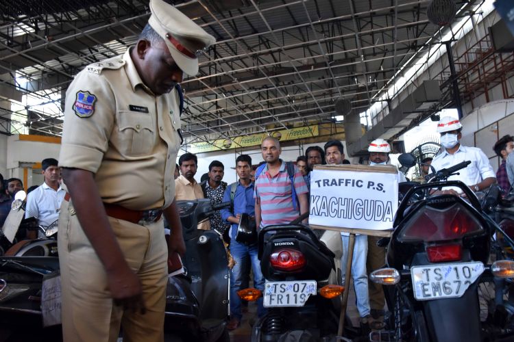 Hyderabad Traffic Police has seized 480 bikes for missing or defective numbers plates. DCP Babu Rao is seen addressing a Traffic Awareness camp at Minar Garden near Salar Jung Museum on Tuesday - INN Photos